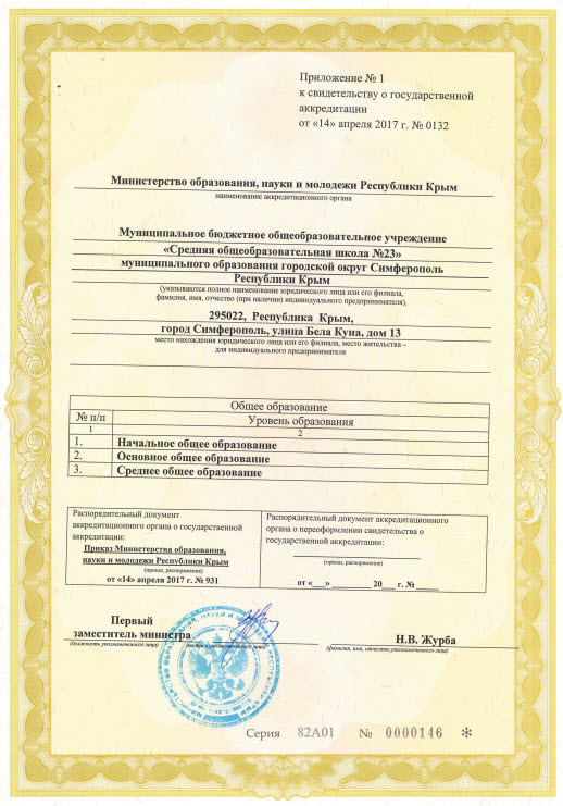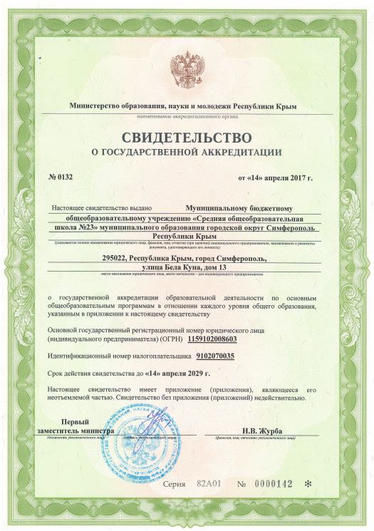 Муниципальное бюджетное общеобразовательное учреждение «Средняя общеобразовательная школа №23» муниципального образования городской округ Симферополь Республики Крым