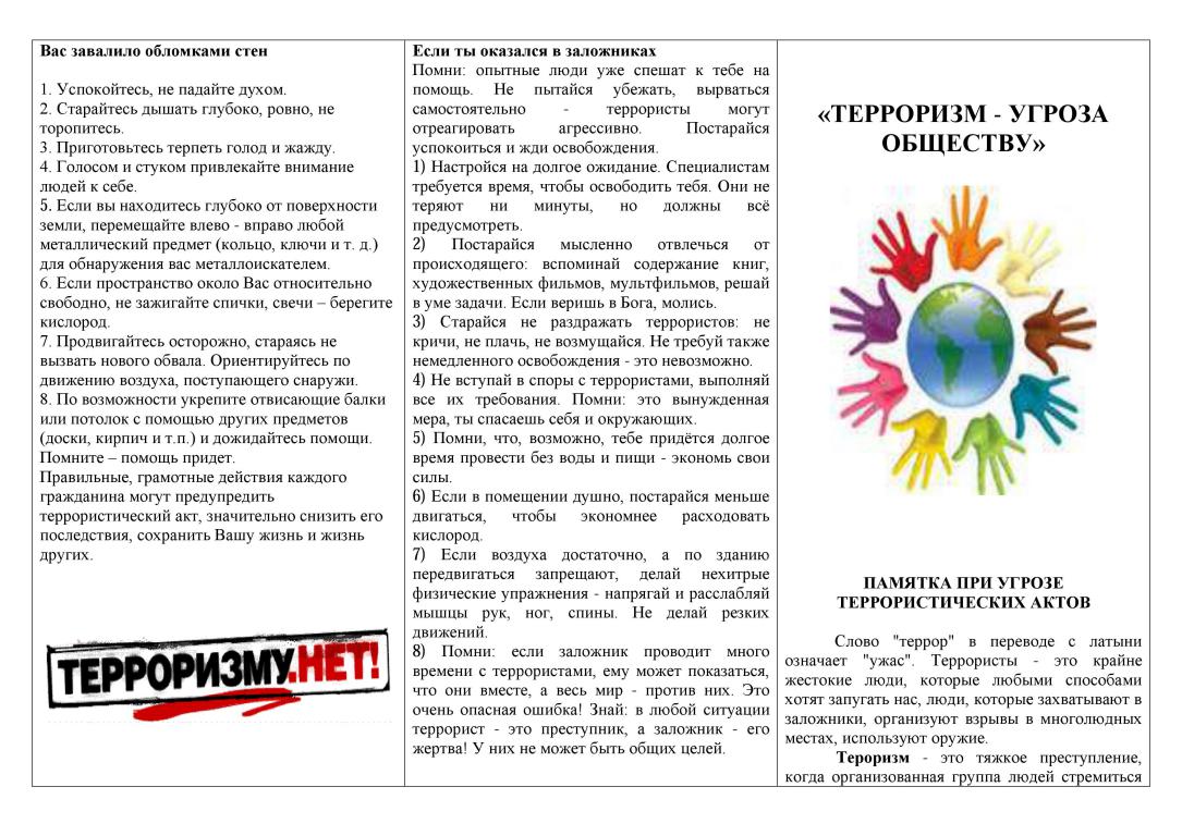 ПАМЯТКИ «Антитеррор. Профилактика экстремизма»