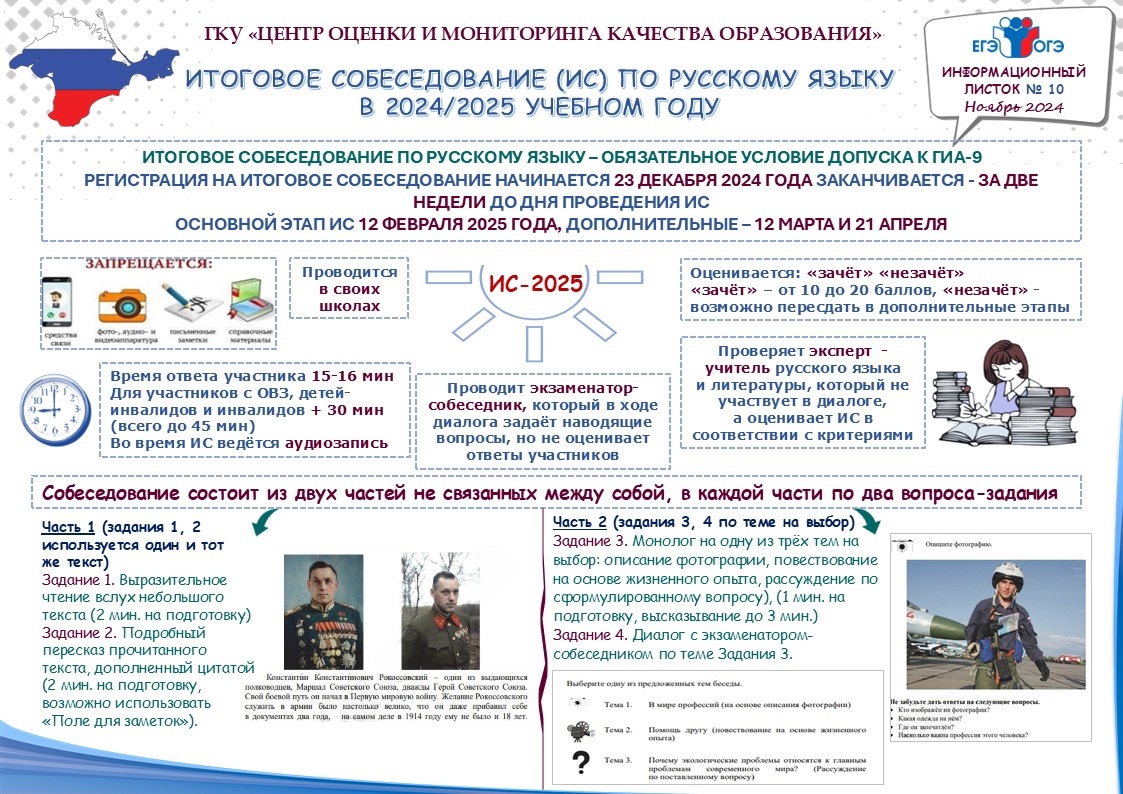 1. Собеседование по русскому языку проводится в устной форме.