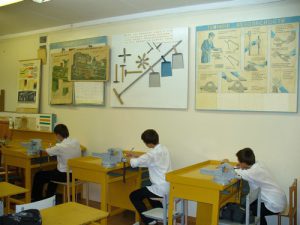 кабинет для обслуживающего труда для девочек и мастерская для мальчиков;