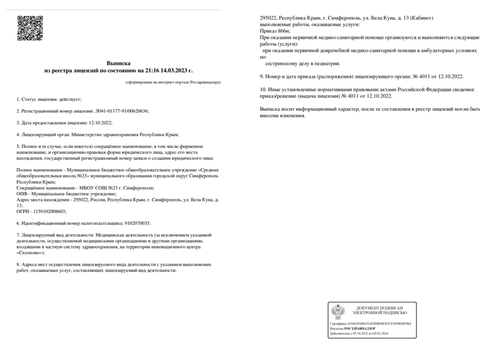 Муниципальное бюджетное общеобразовательное учреждение «Средняя общеобразовательная школа №23» муниципального образования городской округ Симферополь Республики Крым