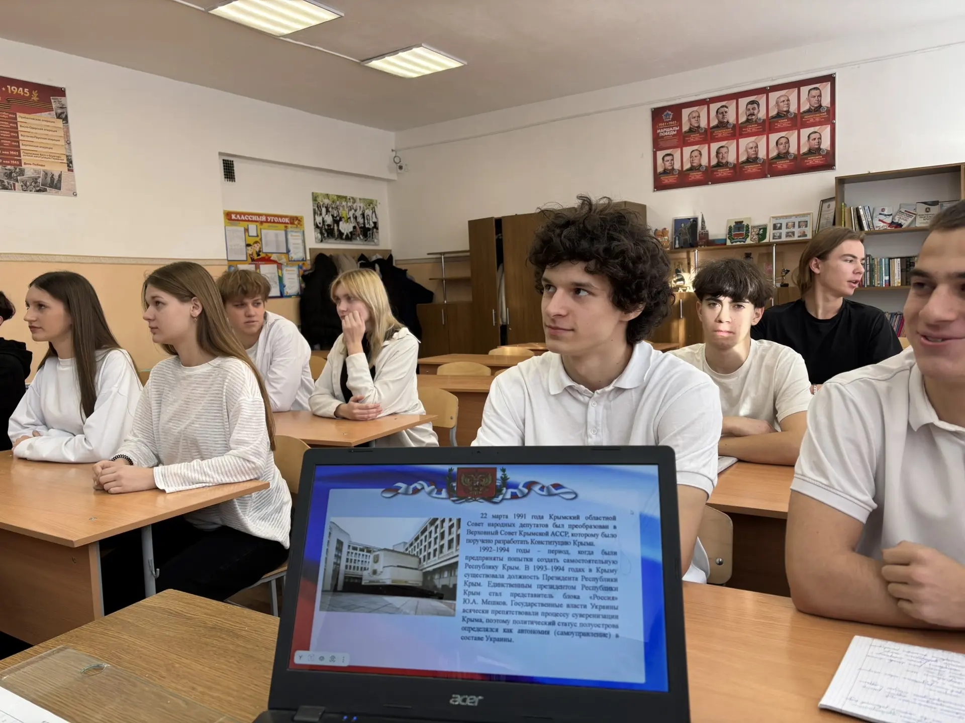 В школе прошли тематические классные часы, на которых учащиеся вспоминали богатую историю полуострова, узнали о его уникальной культуре и традициях, которые складывались веками. Обсудили значение Крыма для России, его героическое прошлое и светлое будущее.